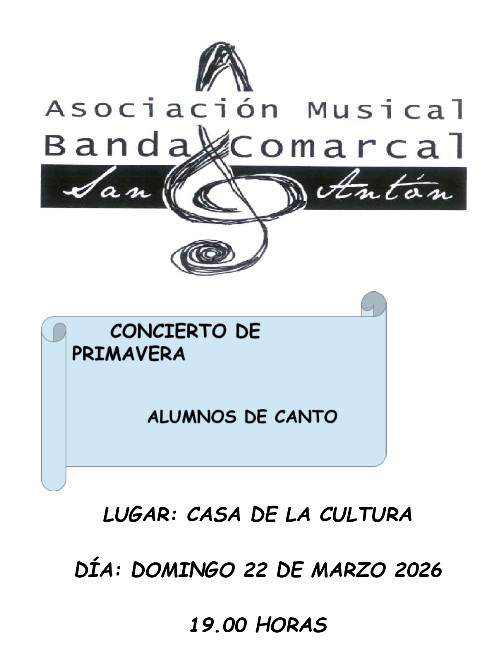 • Concierto de primavera de los alumnos de canto, de la Asociación musical Banda Comarcal San Antón.
