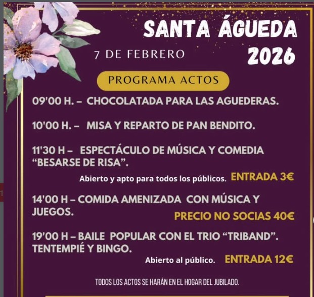 - 14:00 h. Comida de Santa Águeda amenizada con música y juegos.